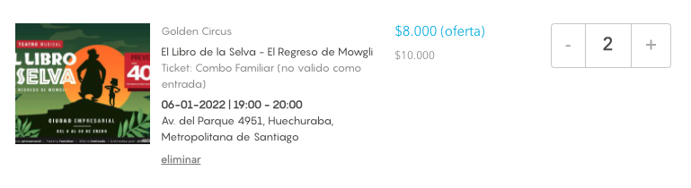 Por favor elimina los combos de comida y donación si los tienes y vuelve a ejecutar tu compra.